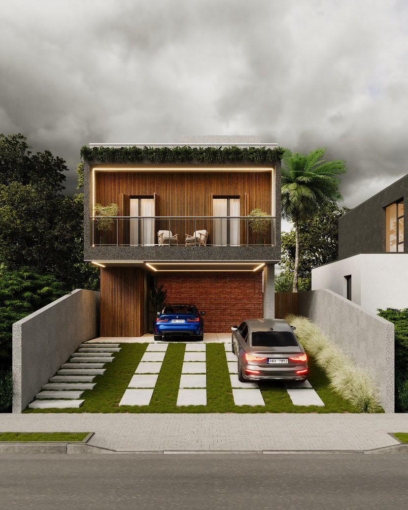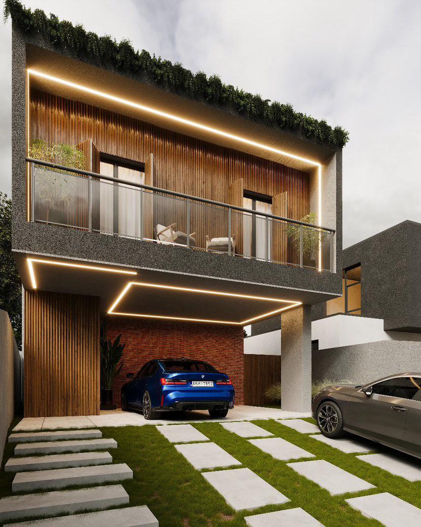 • ⁠revestimento em pedras naturais e ripados